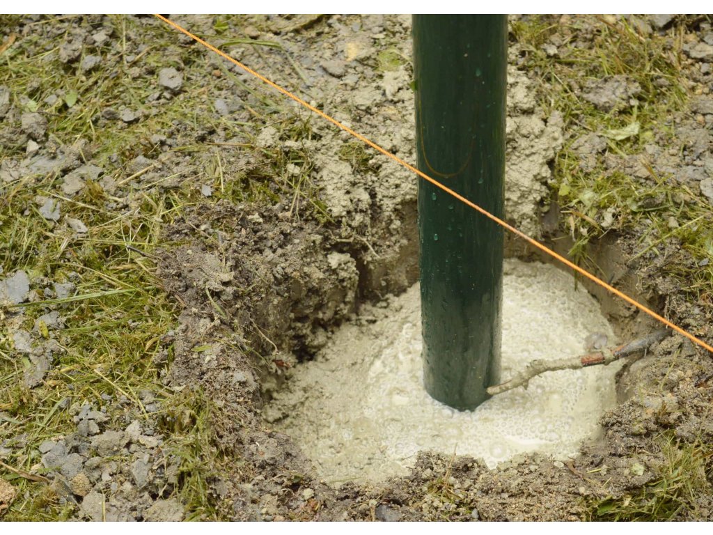 Odporúčame zabetónovať stĺpik min. 50 cm do zeme. Betónový kužeľ by mal mať aspoň 15 cm v priemere a hĺbku 70 cm.